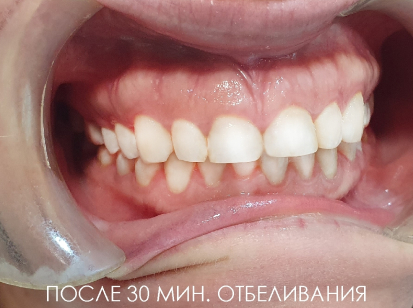 Зубы еще немного станут светлее, окончательный оттенок «ложится» в течение 7 дней после процедуры!