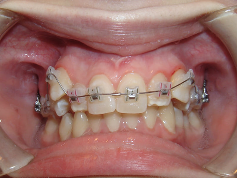 Ежемесячно проводилась коррекция брекет-систем. А также проводились необходимые для достижения результата манипуляции: замена дуг и эластических цепочек, замена пружин, делались контрольные снимки, проводилась припасовка торковых изгибов, фиксация эластиков.