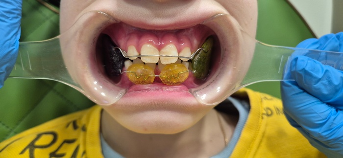 По мере смены молочных зубов на постоянные, постоянным не будет хватать места, так как они крупнее. Требуется создать место для роста постоянных зубов и их выравнивание в зубном ряду. Решаем эту задачу съемными аппаратами - пластина Шварца и несъемным аппаратом Хаасса. Данные аппараты позволяют расширить челюсть за 6-8 месяцев, развернуть не туда растущие зубы в правильное направление и создать новым растущим, постоянным зубам место.