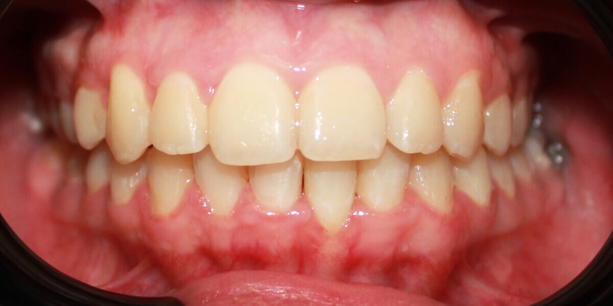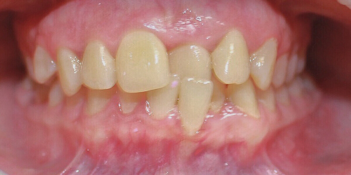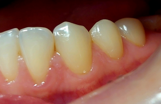 Пациентка обратилась в клинику с жалобами на эстетический недостаток, зубы реагировали на холодные напитки. Чувствительность появилась примерно 1,5 года назад.